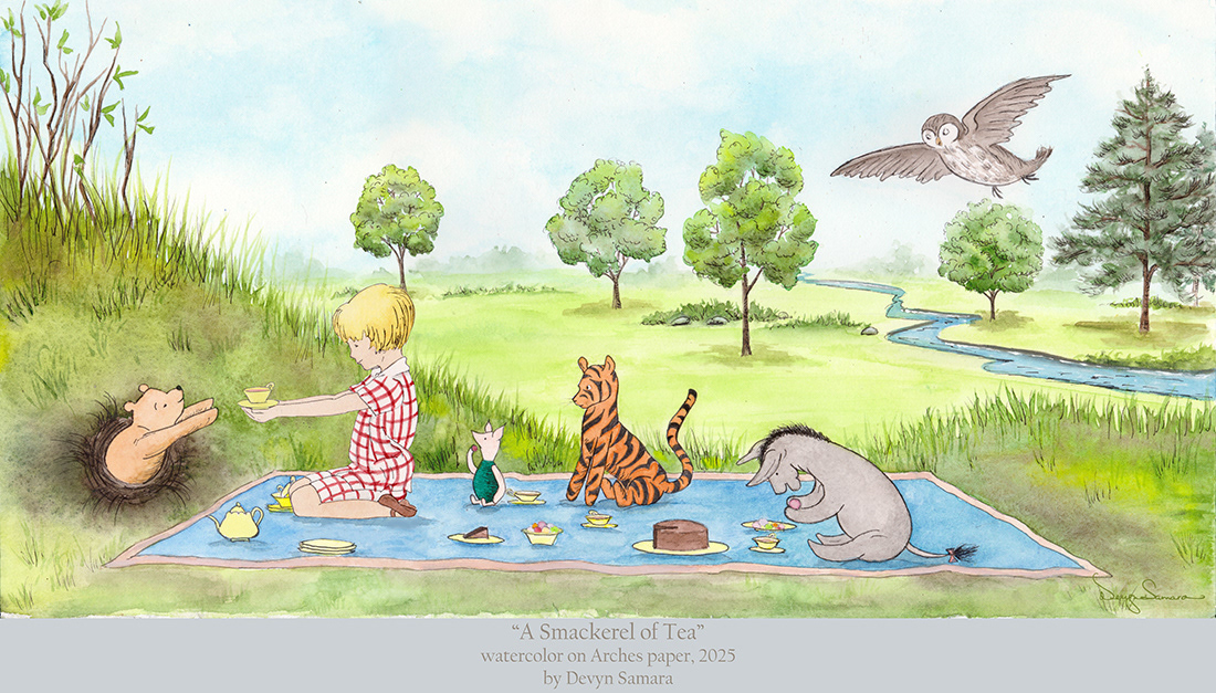 "My love and admiration for Walt Disney is expressed in these paintings. Everything he had a hand in creating, be it film or in Disneyland, has a quality of magic that I don't believe you can find anymore. Most of these paintings are my homage to his genius and those who contributed to his creations. They consist of moments from film or areas of his theme park that he imagined and which live fondly in the hearts and minds of so many. I am proud to call Walt my cousin and one of my biggest inspirations." - Devyn Samara